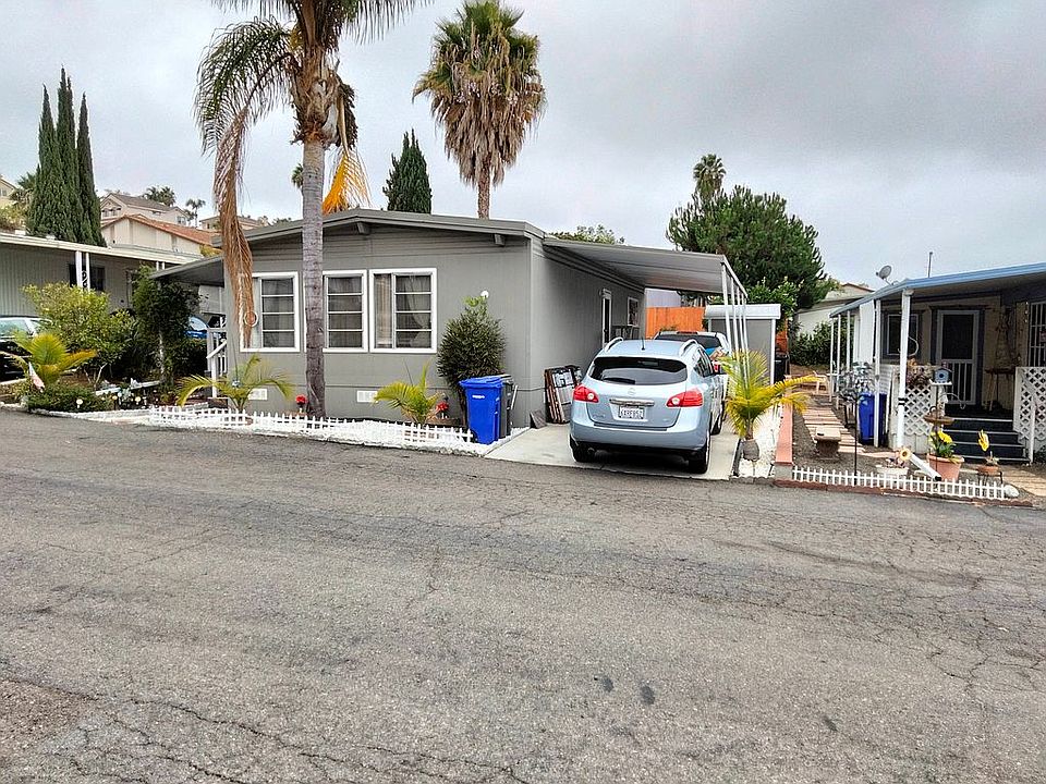 2 Bedrooms, 1 full Bathroom Home in Grandview Terrace a 55/35 park. Grandview Mobile Home SENIOR PARK Community. Near Restaurants, Stores, Minutes to Beach, Shopping centers, Hospitals, Freeway 78, 15 and 5. Centrally located close to everything. NEW Wood Siding, new Railing, nice LARGE PATIO with new sun shading sail in back yard with privacy wood fencing in the back. No property tax on this Mobile home.( Huge advantage). price negotiable. Thank you for looking.