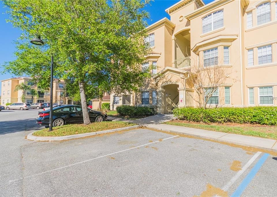Welcome Home This UPGRADED Condo at Terrace Ridge At Town Center, a Gated Community.Close to shopping, Walt Disney World, Reunion, Champions Gate, and easy access to major freeways makes this a desired area to live and enjoy the Central Florida Lifestyle. This lovely 3 bedroom, 2 bath, CORNER UNIT, is on the TOP FLOOR, with access via stairs or ELEVATOR, lets in extra light and great views. A rare One-Car GARAGE comes with this unit The OPEN-CONCEPT Living area is inviting and bright with many windows (upgraded to dual panel), high ceilings, built-in desk and beautiful wood flooring throughout. The Kitchen has a Breakfast Bar, upgraded granite countertops and custom lighting. Relax on your patio over looking the heated pool & hot tub, and sand beach volleyball court. This SPLIT FLOOR PLAN unit has spacious bedrooms and dual sinks in the guest and master bathrooms to provide more than ample space for those extra guests. The GARDEN TUB in the Guest Bathroom will be a welcome place to soak after a long day at the theme parks! Relax at your community pool with close proximity to unit. Additional amenities include a clubhouse, fitness center and game room. THE RENT INCLUDED CABLE, INTERNET, VALET TRASH SEVICE, WATER SEWER, building insurance and grounds maintenance.