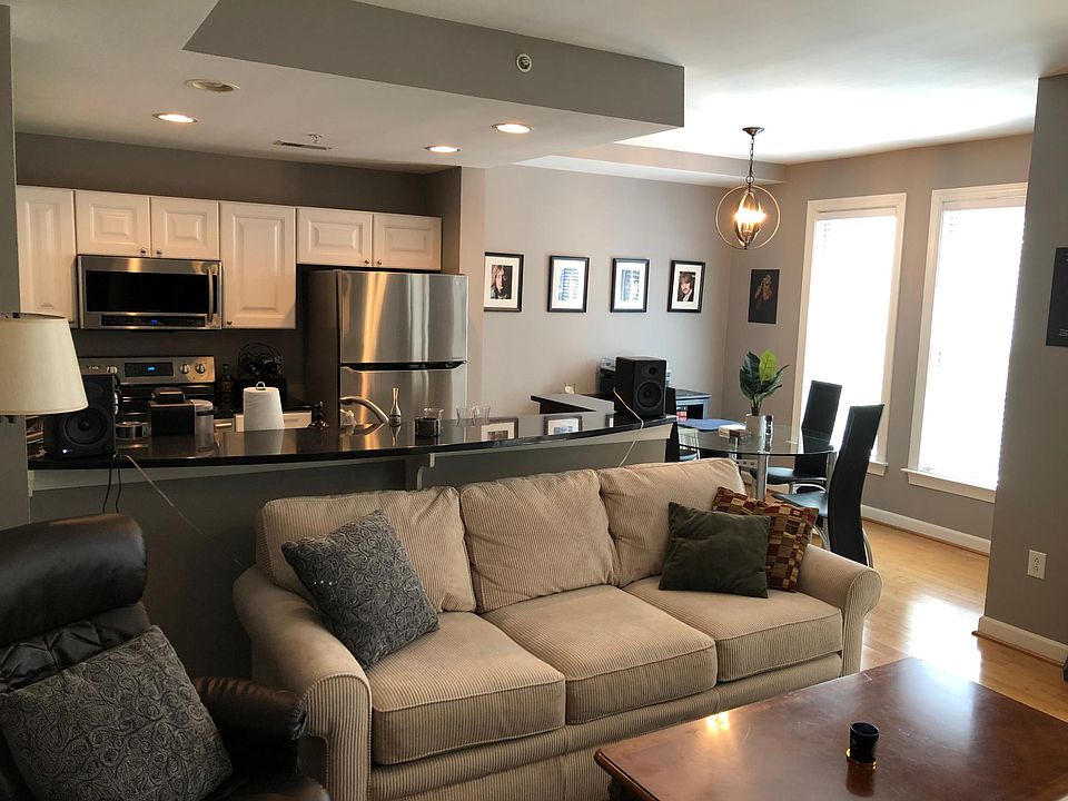 Third floor, one-bedroom, one-bathroom condo in uptown Charlotte. Hardwood floors throughout, balcony overlooking courtyard and pool. Recently renovated bathroom with spacious, new shower and marble vanity. Granite countertops in kitchen and new dishwasher and fridge. Washer/dryer included. Third floor provides direct access to parking garage without the need for use of elevators or stairs. Newly renovated pool and courtyard. Great location, only a few minutes walk to Panther Stadium, BB&T baseball park and Spectrum Center, with restaurant and bar options nearby and short commute to South End, NoDa and Plaza. (Unit is not pre-furnished.)