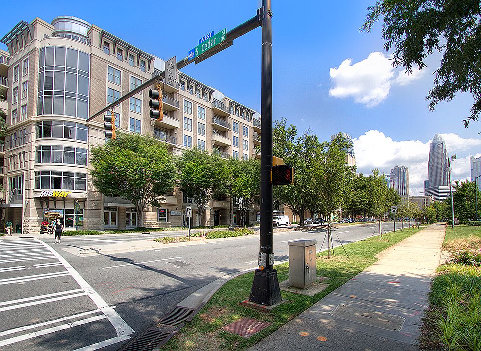 Charlotte Skyline Views from Large Private Balcony of this 6th floor 2 BR 2 Ba Uptown Condo. Situated walking distance from Bank of America Stadium and on the extension of CityLYNX Gold Line for easy transportation around the city. Premier Corner Unit is move in ready w/ new AC unit, new single basin sink, and new carpet in Master and Guest Bedrooms. The Kitchen has Stainless Steel appliances and Granite Counters including a bar height counter for dining and entertaining. Community amenities include an 8th Floor Terrace also w/ skyline views and a beautiful Pool w/ grill. 2 parking spaces included in garage. Tenant responsible for electric, internet and cable. Water included. 2 parking spaces in garage included.