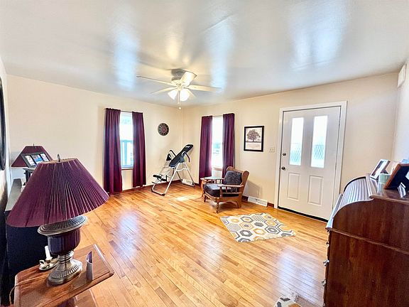 Check out this updated ranch home. It feels like you're in the country but you're right on the edge of town! Close to 54 Highway and the Catholic Church! Upon entering you will immediately notice the well preserved hardwood floors that lead into the 2 nice sized bedrooms and full bath with linen closet in the hallway. The kitchen was fully updated in 2018 and the appliances are yours! Don't miss the new windows in 2015 and the home was recently added on to creating an additional living room and formal dining space. There is a full basement with daylight windows off the kitchen. The basement has so much potential: storage, workout-space, office, family room etc. The home has central heat and air and this unit was installed in 2020! Outside you will notice the lot is HUGE! The entire backyard is fenced with a double gate for easy backyard access for a vehicle/trailer/RV. Another added bonus is the garage is insulated and heated with an additional carport!