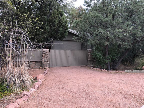 Charming cottage home sits on 2 lots with custom wood paneling. 2 bedroom/2 bath with optional 3rd bedroom/office.Detached 2 car garage with 1/2 bath; attached carport with circular drive.Wood floors in living room and dining room. Slate floors in kitchen, new carpeted bedrooms upon sale.Custom security doors throughout.Wood burning stove; all electric appliances.Newer roof and water heater, fresh exterior paint.Lush landscaping with sprinkler and drip systems.Cobblestone patio and 2 decks; fenced back yard .