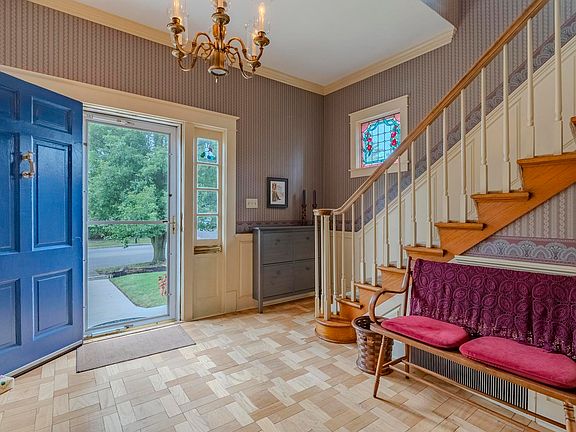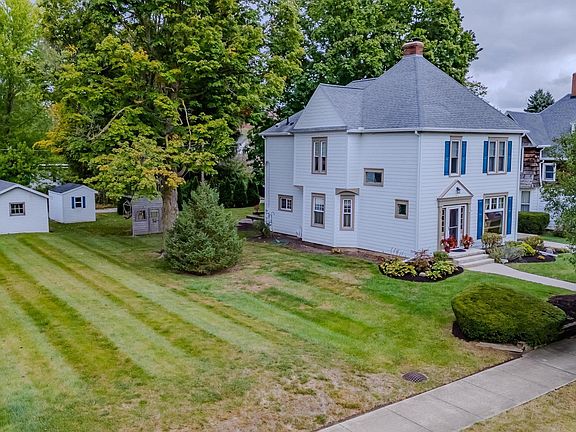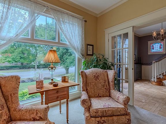 Stately Historic Gem with Modern Comforts. Step into this stunning home where architectural charm meets modern updates. The welcoming foyer showcases custom stained glass windows, open stairs and leads to a cozy living area with a fireplace, arched bookcases, and beautiful millwork. A wood-encased archway opens to the formal dining room, featuring a bow window with built-in storage benches and wood wainscoting perfect for entertaining. The remodeled kitchen blends modern convenience with classic character, featuring a spacious walk in pantry, full appliance suite, and solid surface countertops. The updated laundry area has a newer utility sink, built-in storage, and plentiful counter space. The main level also includes a luxurious bath with a jetted garden tub. Upstairs, you'll find 4 spacious bedrooms with ample closet space. The primary bedroom boasts a wall of a floor-to-ceiling closet & 2nd closet, while the guest bedrooms also offer extensive storage. A roomy full bath featuring a built-in linen closet with drawers completes the second floor. Outside, enjoy a fantastic double lot with a new composite deck, a screened porch, and space for play, including a treehouse. Two garages and a garden shed offer plenty of storage. This rare home offers the perfect blend of vintage charm and modern comforts all within walking distance of the River Walk, downtown eateries and shops. Don’t miss it!
