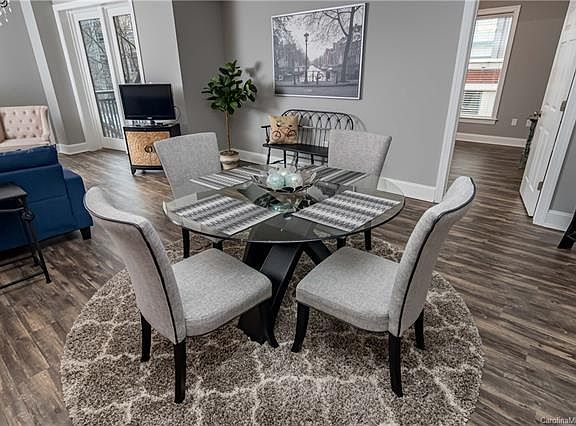This unit is completely furnished and can be rented for 3 month minimum rental. All utilities are included. This is a secured entry building with two parking spaces. It is so close to all the great activity that makes Charlotte a game changing city such as the Panther Stadium, BB&T Ball Park, Johnson & Wales University, Gateway Village YMCA, restaurants and so much more. The Gold Line is nearing completion. One can see the tracks directly in front of Gateway Plaza door and the Line will run through West End to Johnson C Smith University. The condo is on the third floor, is an end unit with a generous sized balcony. The unit comes furnished with everything, including high speed internet and all utilities. As for TV, it is set up for ROKU account holders and basic cable