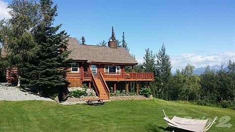Wow! Spectacular Alaska Log with Breathtaking views of Pioneer Peak and Knik Glacier. Wonderfully remodeled and decorated. The exterior of the home has been masterfully refinished. It has an unreal and magnificent Great Room, and huge family room downstairs as well. Two fireplaces with 5 bedrooms and 4 baths. Grand master with spa like suite. Lovely setting, very private. A Dream Home.