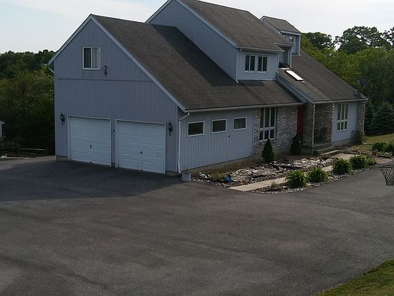 Attn. Contractors, Car Buffs, or anyone looking for spacious rms, fantastic views, in-ground pool & abundant gar space. This 2 story contemporary situated on a corner 2 acre lot has 3 br + bonus rm & 2.2 bath rms, large driveway with entrance on each side. Entering through the tiled foyer, open concept living/family rm is to the right with Kodiak wd stove, walls of glass overlooking the fields beyond. Recently replaced sliding dr leads to spacious deck overlooking the in-ground pool & 32' x 28' implement building which was set up with 1/2 ba, serving window, snack bar, beer refrigerator & keg set up. Returning to the main house...kitchen has center island with cook top stove & griddle. . There is a half bath & additional rm in the front with a bar that could easily be converted to study or office etc. 2nd floor has 3 br, 2 ba plus bonus rm. New 16 SEER Heat pump has been installed. Call today to schedule your private showing. Buyer Warranty include Buyer Preferred with pool & spa.