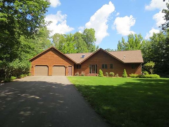 Lake Mildred is noted for its clear water, is attached to Clear Lake and has 191 acres for recreational activities. This 1990 Barden Built home sits on 2.25 acres of land with 175 feet of sand, swimmable frontage and is set up for fun and entertaining friends & family. The kitchen has built-in stainless steel appliances, recessed lighting, an island for prep work, snack bar and knotty pine oak ceilings that flow into the dining area and living room. There is a 4 season sun room with pine tongue and groove walls and flooring, with access to the lakeside cedar deck. The master bedroom suite is on the main floor. In the finished walkout basement there is a field stone gas fireplace in the family room, an office, 2 nicely sized bedrooms, utility room and a full bath. The exterior is complete with a black top drive, 2 car garage, is nicely landscaped and has a gradual slope to the waters edge. This property has much to offer to the person craving the Northern Wisconsin lifestyle.