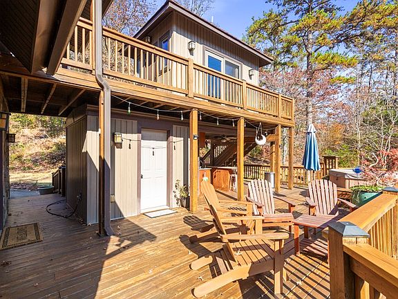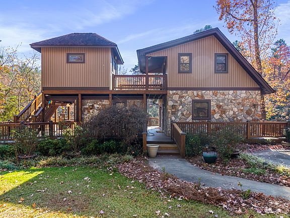 Welcome to your piece of paradise on a magnaminous section of the Oconee Creek River! This UNIQUE property is nestled on 9.4 acres of unrestricted land and boasts three separate homes/buildings comprising a total of 4 bedrooms(potentially 5 bedrooms) and 3 full baths and 2 half baths—offering space and versatility like no other. The main home on the water has a master upstairs overlooking the river/waterfall and then there is another separate bunkroom upstairs with multiple bunk beds overlooking the river as well. The lower level of the river house has a full kitchen and living room with plenty of outdoor decking that affords a wet bar with seating and plenty of room to entertain your guests while taking in all of the beauty and sounds of the river and nature.
