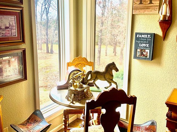 Secluded & partially wooded 32 acres with a custom build home, private lane, all ONE Level, 1900' of beautiful hardwoods, tile and carpet. Large bedrooms, Huge Windows all around and a covered front porch to enjoy the outdoors. Enjoy the pond, and garden areas. The acreage has been well maintained and Hayed/mowed. In the back is a large concrete patio for an outdoor kitchen. A large detached shop allows for all those projects and toy storage. Two full car attached garage is helpful for protecting the wheels. Walk in pantry & laundry off the kitchen make this home so comfortable and easy to live in. Two dining areas as well, for formal and informal eating. Close proximity to a paved country highway just off 54.