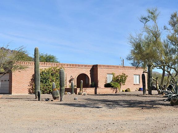 Classic burnt adobe construction on 4.54 acre horse property. This 4 bedroom 2 bath home is move-in ready and offers so much: separate living room, dining room, and family room with a cozy wood-burning fireplace. Updated stove and range in the kitchen. Ample storage throughout. Walk-in shower in the master bathroom, updated counter tops in both bathrooms. Sparkling swimming pool in the landscaped backyard to enjoy those summer months. The elegant front courtyard features a water fountain with large potted plants. This property even comes with a basic horse shelter and corral. Dozens of saguaros spread throughout the lot. Beautiful views! Where else can you find so much property with such a cozy dwelling? Your search has ended - come see this home today!