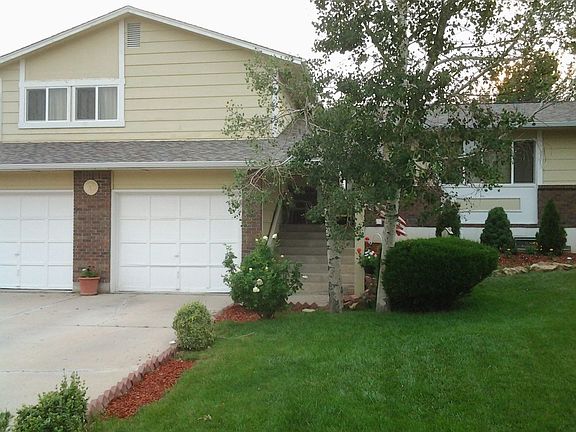 beautiful tri level home with amazing Mountain views walk out of the newly fence landscaped backyard 2 biking walking trails that circle a large soccer field and playground stay at home and enjoy the great Colorado outdoors new large 10 by 22 ft. Deck . kitchen that features French doors stainless steel appliances, Parkay wood floor ,spacious dining room and living room, family room on ground level has new carpet, brick fireplace, French doors that open to patio that has a Jacuzzi, enjoy the relaxation and scenic views large basement 2 car attached garage with lots of storage cabinets, bedrooms are spacious, new tile floors in bathrooms, new carpeting in family room and master bedroom, new paint throughout, new roof and gutters ,new windows, a must see. Neighborhood Description active and retired military friendly neighborhood