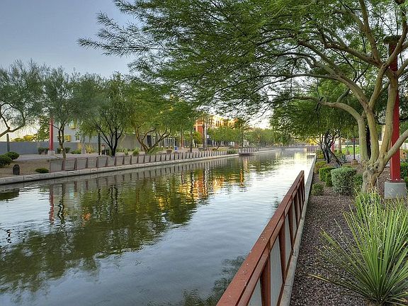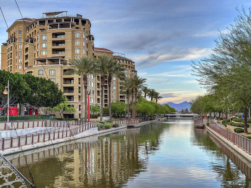 This is an exceptional, beautiful, immaculate, and well-kept one-bedroom furnished pied-a-terre condo in the Premier Luxury Scottsdale Waterfront Residences. This unit has the highly desired south-facing garden and Arizona canal views. A one-and-a-half bath, with an extended balcony and soaring 10-foot high ceilings offering robust natural lighting, this unit is located in the heart of beautiful downtown Scottsdale. This upgraded condo has high-grade kitchen cabinetry, elegant granite countertops, stainless steel Viking appliances, an upgraded full-sized washer/dryer, oversized travertine tile floors, customized California closets, and a large balcony with expansive views. The living area has a built-in bar, storage, and a gas fireplace. This luxury and one-of-a-kind condominium will give you 1,250 square feet of generous space and comes with two garage parking spaces and a secure storage unit. Amenities provided in this building included 24-hour security and concierge services, a rooftop pool and hot tub with expansive 360-degree views, a steam room, massage rooms, a state-of-the-art updated gym, an outdoor kitchen and barbecue area, a club room, bicycle room, complimentary valet parking, and highly professional staff. During the winter seasonal months, decorations and events abound just out in front of the condo balcony. In addition to this prime location, just blocks away you can visit shops at The Fashion Square Mall, and restaurants and shopping across Old Town Scottsdale are all within walking distance. Phoenix Home and Gardens Magazine showcased this unit in the January 2018 Edition. Interior Designer Jamilyn Fournier completed the design of this soft and airy contemporary spacious condo. The Scottsdale Waterfront Residences offer residents the best of Scottsdale living amid an Arizona paradise.