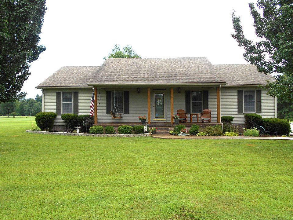 Listed by Tooty Cottrell 270-589-1509 - 3 bedroom vinyl siding, extensive landscaping, hardwood floors, vaulted living room, formal dining room, gas log fireplace, lots of closets, oak cabinets, covered front porch, rear deck, 14 x 20 storage building, 2 large finished rooms in basement and oversize garage with openers, large lot - 1.83 acres, excellent condition, must see!