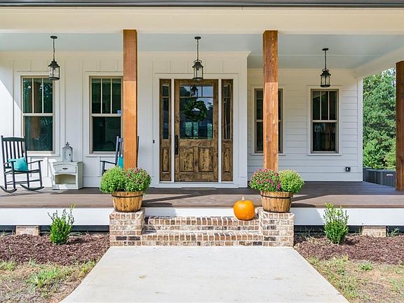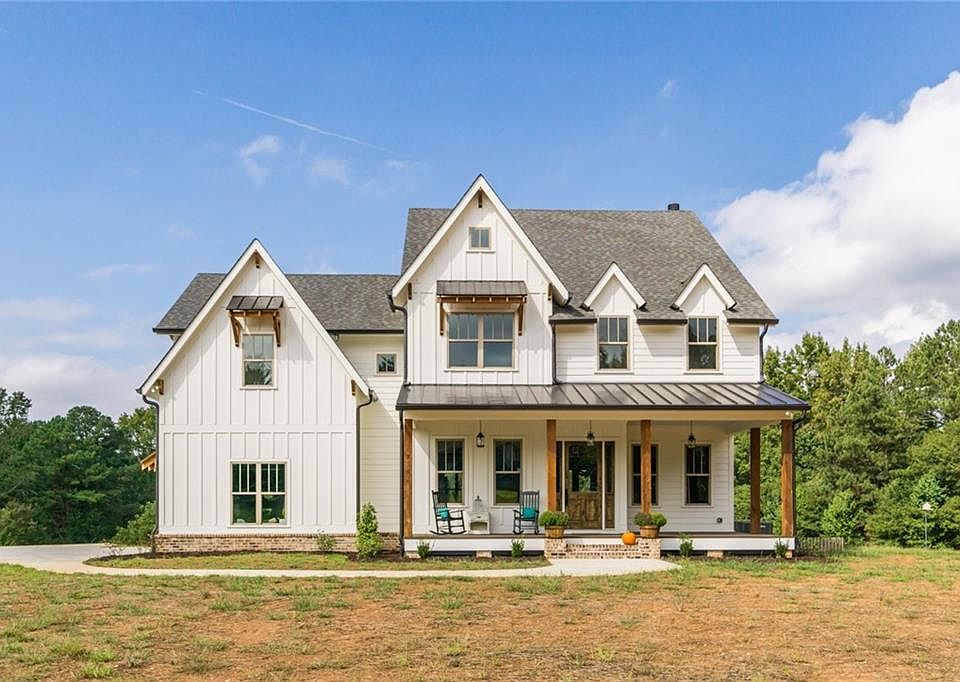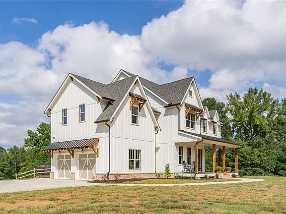 A Horse Lovers Dream - Beautiful new FARMHOUSE on 5 acres. The serene setting of this home offers private living that has been customized in every way. Features include multiple covered porches and decks, 10' ceilings on main w/oversized 8 ft doors. Open floorplan with a gorgeous kitchen overlooking the LR and shiplap breakfast area, separate DR & office. Slate GE appliances, custom cabinetry, double ovens and custom lighting. Large Master with stunning bath featuring a separate soaking tub and dual overhead rain steam shower. Add'l 2.5 acres also available FMLS 6084431
