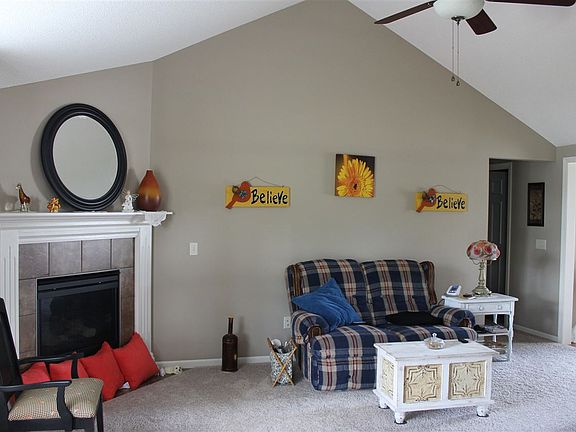 Immaculate, borders pond and common area. stone front, well landscaped, cathedral and trey ceilings, range, refrigerator, microwave, washer & dryer stay but are not warranted. corner fireplace, oversized garage with bump out, high e furnace, custom blinds, 6 panel doors, crown moldings, custom draperies, large covered porch and extra patio overlooks pond.