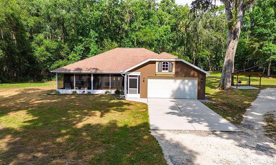 Price Adjustment!! USDA APPROVED!! Escape to your own private retreat with this charming 3-bedroom, 2-bathroom home nestled on a tranquil plot of land just under an acre. Located in a secluded enclave, this well-kept home offers the perfect blend of modern convenience and rustic charm. As you approach the property, you're greeted by a welcoming circle drive, providing ample parking for guests and easy access to the home's entrance. Step inside to discover an open-concept living space bathed in natural light, featuring vaulted ceilings and tasteful finishes throughout. The spacious kitchen is a chef's dream, boasting stainless steel appliances, nice countertops, and tons of cabinetry, making meal preparation a breeze. Whether you're hosting a dinner party or enjoying a quiet night in, this kitchen is sure to impress. The master suite offers a peaceful retreat, complete with a luxurious en-suite bathroom and ample closet space. Two additional bedrooms provide versatility for guests, a home office, or a hobby room, ensuring plenty of space for everyone to spread out and relax. But the real gem of this property lies just beyond the back door. Step outside to discover your very own 24x24 metal workshop, that offers electric, water, metal roof, concrete floors and roll up door with an additional covered carport area. Perfect for DIY projects or storing outdoor equipment. With plenty of space to work and play, this workshop is sure to be a favorite spot for hobbyists and handymen alike. Surrounded by mature trees and lush foliage, the backyard offers a sense of privacy and seclusion, creating the perfect setting for outdoor entertaining or simply enjoying a quiet moment in nature. This home has a BRAND-NEW ROOF, 2019 AC, and 2023 Mini Split in Garage. Located just minutes from Downtown Brooksville that offers a quint small town that offer shopping, dining, and year around events. Yet far enough away to feel like a world apart, this home offers the ideal combination of convenience and tranquility. The garage is equipped with a Mitsubishi mini split system making it easy to convert to an additional bedroom. Don't miss your chance to make this your own slice of paradise. Schedule your private tour today and start living the life you've always dreamed of. Easy access to I-75 making it easy access to Downtown Tampa, Tampa International Airport, St Petersburg, Orland, and Florida's beautiful beaches.