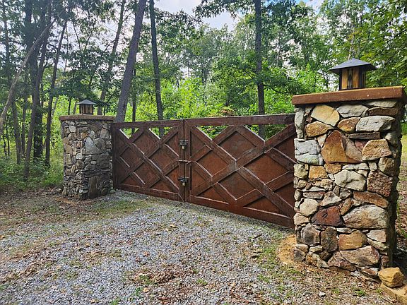 Amazing West Brow land on Lookout Mountain with incredible views & magic sunsets. The inviting entrance has a unique lantern lit gate set in stone pillars. A winding drive leads you into the wooded 10.5 acres with water and underground power in place. A generous open area and trail to the brow open the view and add to the options available for building. Septic will need to be installed. Priced $350,000.