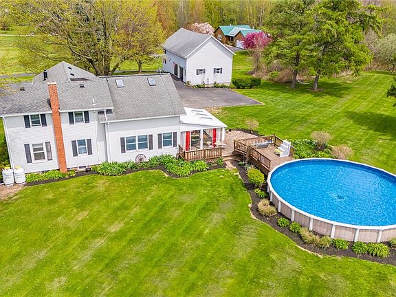 Country Living at its finest. 4 Bedroom colonial set on just over 3 1/2 acres. Over 3000 square feet allows the space to fit all your needs. Open floor plan with spacious living room, dining room, den, study, and more. Spacious sunroom with sliding glass doors overlooking your well landscaped yard. well maintained above ground pool, basketball court, blacktop driveway. This property also includes a 2 story barn that has room for all your toys. Just minutes to the lake, Sodus Point/Bay, Maxwell creek, Burnaps Farm market and more. This home has plenty of room to stretch out and enjoy all nature has to offer. Open Saturday 5/11 from 12-2. Delayed negotiations 5/14 at 2pm.