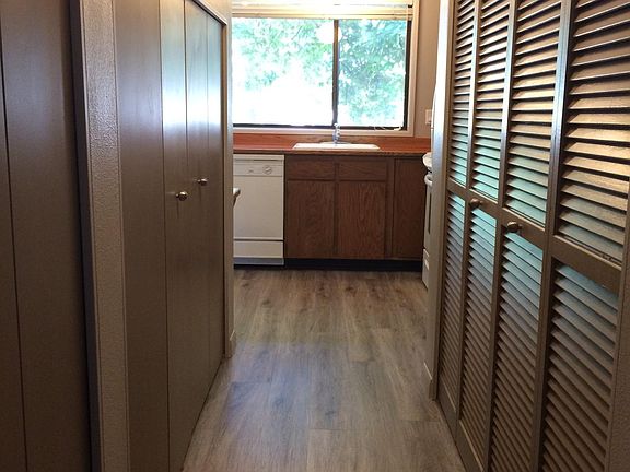 This two-bedroom unit that was remodeled this summer and features new laminate floors, paint, and a quartz slab sink in the bathroom. Other features include in unit laundry hook up, A/C, a walk in closet in the larger room, and a rear porch on the ground level that is open to a large park like setting, and a gated community pool. This unit includes a single car garage. Lease payment includes trash and water. Tenant pays for electricity.