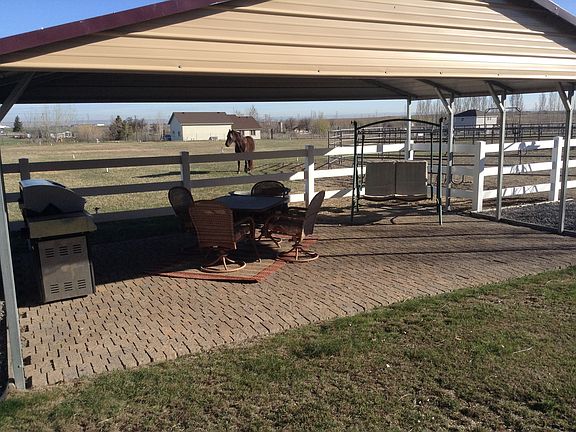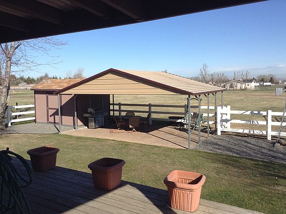 Horse lovers paradise, and storage galore!!! 4 Acres W/Water rights set up to spoil you or your horses! Spacious home, 3 bed 3 bath with 2 DBLE garages. Barn with stalls, 2 lean-to's, shop, arena,corral,, RV parking, Solid set sprinklers with timers, Vinyl fencing, Garden shed, coverd front and back decks also a covered barbacue patio. A must see property.