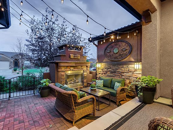 This one of a kind Banning Lewis gem immediately feels like home. From the moment you enter the front courtyard, the custom lighting and outdoor fireplace welcome you into a private and cozy outdoor retreat. This former Classic model home features 6 total bedrooms including a master suite both up and down along with 4 total bathrooms, each with a double vanity. The open concept main level features a fully upgraded kitchen with matching GE Profile appliances, gas cooktop, double oven including a convection/microwave combo, granite countertops, soft-close Merillat cabinets, and a sizable walk-in pantry. The family room is highlighted by the custom built-ins and a gas log fireplace. The spacious main-level master has a 5-piece bath with a large corner garden tub, granite countertops, vessel sinks and tile flooring. Additionally the main level features a formal dining room, a study with built-in shelving, two additional bedrooms and a full bath. Upgrades continue as you travel downstairs to an area perfectly suited for entertaining. It is highlighted by a full wet bar, an expansive family room with a stone-clad fireplace, and an adjoining theater room. The private downstairs master rivals the main-level master in size and finishes, and is perfect for multi-generational living. It boasts it's own 5-piece bath as well as two oversized walk-in closets. Two additional bedrooms and the fourth bath complete this 4700 square foot ranch-style home located only 1 block away from Banning Lewis Ranch Academy.