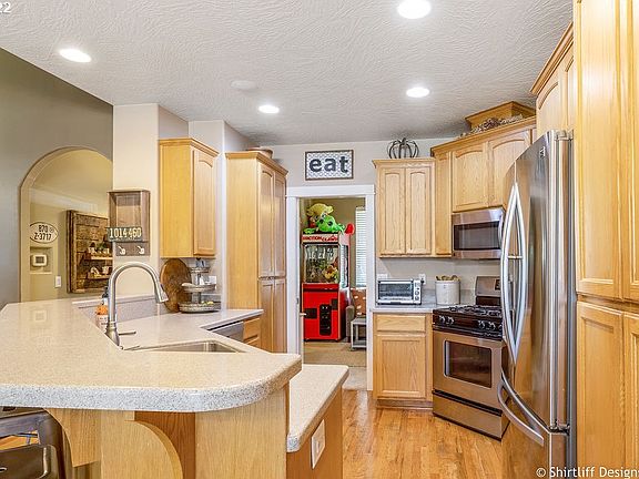 Beautifully Appointed Home on 1-Level w/3-Car Garage in a Highly Sought After Neighborhood! This Home Offers Great Separation of Space. The Kitchen has Stainless Appliances, Corian Counters, Eating Counter, Spacious Dining Area, Open to the Vaulted Living Rm w/Gas Fireplace. Large Primary Suite; Walk-In Closet, Dual Vanity, Walk-In Shower, Jetted Tub. Office/Den near Entry. Hardwoods. 10' Ceilings. Indoor Laundry. Multiple Seating Areas in the Fenced Backyard. Private & Inviting Covered Patio.