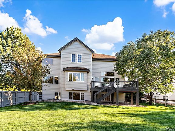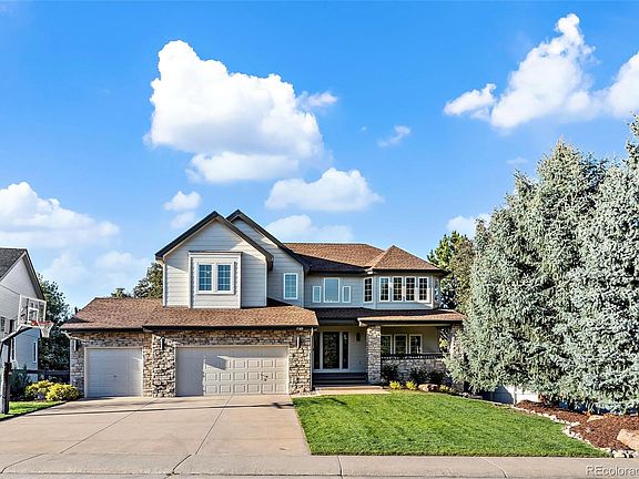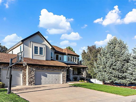 Welcome to this gorgeously remodeled (including brand new Pella windows) Castle Pines North gem! Located on a corner lot on one of Castle Pines most coveted streets, this beautiful home features 5 bedrooms, 4 bathrooms. A short walk to 3 elementary schools and a large amenity filled clubhouse offering a pool, courts, and seasonal family activities. Step onto the inviting stone covered front porch, then once inside you will be greeted by a grand entryway and curved staircase. The warm hardwood floors are complimented by traditional finishes throughout. The kitchen is a chef’s dream with light cabinetry, new appliances, gas range, quartz countertops, a breakfast bar, island, and large nook. Open to the 2 story family room, you’re bathed in natural light with all new Pella windows and vaulted ceilings. A stone gas fireplace will warm you during the winter and the large outdoor deck is the perfect place to enjoy the shade on warmer days and evenings. The large dining and living rooms are a perfect place to host formal gatherings while the main floor laundry room is finished with custom tile, storage and a utility sink for convenience. Upstairs you’ll find a sanctuary in the large primary suite including a 5-piece bathroom with a free-standing soaking tub, double vanity, custom tile, and a generous walk-in closet. 3 more bedrooms and an updated secondary bathroom finish this level. The basement is a dream with tons of natural light through the garden level windows. A large rec space is ready for any of your desires while a wet bar makes it a great place to host game nights. A conforming bedroom and full bathroom are tucked away to allow for privacy. The large, flat, private yard has plenty of space and the 3-car garage has more than enough space for cars and toys. This home has everything – New: roof, Pella windows, HVAC, water heater, water softener, reverse osmosis, interior and exterior paint, carpet, kitchen appliances, bathrooms, the list goes on!