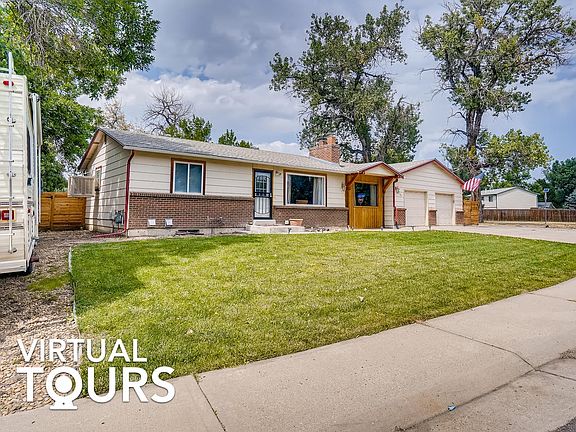 Corner lot 2 bedroom / 2.5 bath ranch home in Arvada! Notice the well-maintained lawn and wide driveway as you enter. The living room sits at the entrance and features a wood burning fireplace with brick surround, cozy carpet, and a picture window. Pass French doors into the kitchen, equipped with stainless steel appliances, light plank flooring, skylights, recessed lighting, and wood cabinets. Customize the long dining room to your liking! Exposed wood beams, brick wall, picture window, and chandelier lighting will get you started. Access the backyard from here, or from the primary suite located ahead of the kitchen. This suite has a tray ceiling, recessed entertainment center, and large walk-in closet. The bathroom contains a granite countertop and tiled walk-in shower. One other carpeted bedroom and a bathroom, featuring a pedestal sink, shower/jetted tub, and tile wall surround. Head to the partially finished basement for a living area with newer carpet and a brick wood burning fireplace. There is also a half bath, non-conforming bedroom with adjacent bonus room, and laundry. Entertain on the spacious concrete patio that includes a newer hot tub! A lush lawn, planter boxes, and new privacy fence complete the yard. Two-car garage, four-car driveway and RV parking! Newer furnace and hot water heater. Forced Air heating. Located in close proximity to parks and restaurants, and just 20 minutes away from the mountains! Buyer should verify all information.