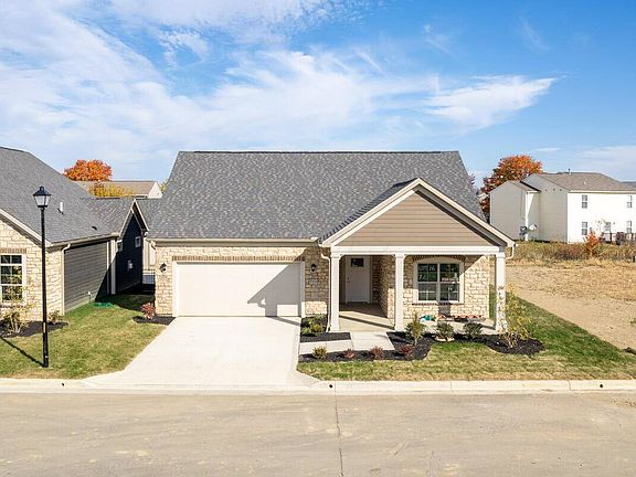 Portico is the most desired and highest selling floor plan for reduced maintenance communities across America. Ranch style with no steps at all, even from the garage. Talking about garages, all of ours are drywalled, painted and have EV charging outlets. Absolutely stunning master suite with a sitting room that can be used as an office, reading room, or sun room to enjoy your quiet time. Floor to ceiling ceramic tile in the master shower. All vanities are higher for easy access. Open floor plan for entertaining. Center island kitchen with 42 inch cabinets, hard surface countertops, and plenty of natural light. Upgraded flooring, and plumbing package. Private fenced in courtyard with a well appointed patio. Huge laundry room and a lot of storage.