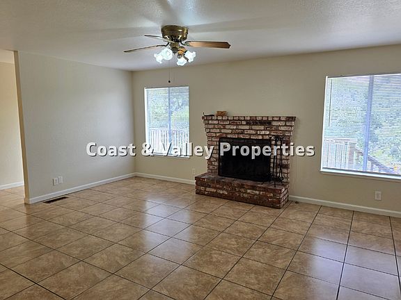 Nestled on a quiet cul-de-sac in North Monterey County, 7187 Langley Court offers 3 bedrooms, 2 bathrooms, and 1,344 square feet of peaceful living. This single-story home sits on a gently sloped gravel driveway surrounded by mature trees, offering privacy and a serene setting. The exterior features light brownish-gray siding, a peaked roof, a brick chimney, and a raised wooden deck that extends from the back of the homeperfect for enjoying the outdoors. Inside, the spacious living room welcomes you with light tile flooring, soft beige walls, and a ceiling fan with lighting. A brick fireplace, framed by two large windows with natural light streaming in, adds warmth and character to the space. The kitchen and bedrooms continue the home's clean, neutral aesthetic. The bathroom includes a charming tile-top vanity, white cabinetry, and soft cream-colored ceramic floors, creating a calm and understated atmosphere. Located with easy access to Highway 101, this home blends privacy and convenienceideal for those seeking comfort in a natural setting. Tenant pays: Water; Garbage; PG&E. Tenant's personal property is not insured by Landlord or Agent. Tenants are required to procure renter's insurance, including liability coverage. Tenant to maintain landscaping in front fenced area, excluding large trees. Dogs considered on a case-by-case basis, pet deposits will be assessed as applicable. A non-refundable $45.00 screening fee is required per applicant. Contact Coast & Valley Properties for more information, listings other than Coast & Valley Properties are fraudulent. Coast & Valley Properties, Inc. provides housing opportunities without regard to race, color, creed, sex, religion, national origin, familial status, handicap, ancestry, physical or mental disability, medical condition, marital status, citizenship status, military service status, sexual orientation, source of income, age, gender identity, or any other classification protected by applicable federal, state or local law, or any other arbitrary reason. License#01943829