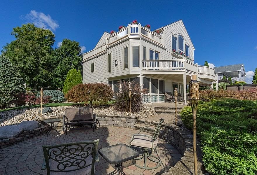 RARE Opportunity to own Pristine Hudson Lake Front home full of custom finishes & one of kind architecture! Move-in-Ready, this is the lake home you have been searching for. Home features several amenities: heated in-ground pool w/ auto cover,lake front beach,outdoor stone fireplace w/ patio,large screened in porch,irrigation. In 2003, large addition added. Enjoy the open concept floorplan which boasts 3,300 finished sq ft, finely decorated throughout-enjoy the lake views from almost every room in this house. The craft-made kitchen opens up to the sun-filled living & dining area, perfect for entertaining & soaking in the serene lake views. Walk out to the Large rear deck that overlooks the lake. Finished walk out basement w/ kitchenette & attached screened porch. Brand New roof w/ copper valleys & New rear Pella windows. Never be w/out Power w/ the whole-house generator. Yard is beautifully landscaped from front-back. Not a detail was missed on this home & property! Rentals allowed.
