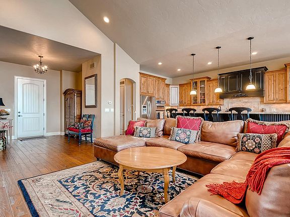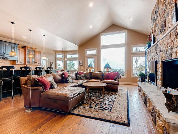 Incredible custom located on 2.1 fully fenced acres with mature landscaping and breathtaking mountain views in the sought after community of Foxfield. Fabulous great room offers 10' ceilings, massive stone gas fireplace and a wall of windows providing views of the mountains and the private back yard. The chefs kitchen is complete with custom knotty alder cabinets, granite counters, huge island, stainless appliances, 5 burner gas cooktop and a built in banquet. Main floor master includes a sitting area, fireplace, mountain views and a luxurious master bathroom. Beautiful hardwoods are throughout the main floor. The finished garden level basement has 10' ceilings a large family room, gas fireplace, 2 bedrooms with jack and jill bath and ample storage. The home has both radiant heat and a furnace. Interior water is provided by ACWWA. There is a well for outside irrigation. A 1500 sf accessory garage provides extra storage or parking. No expense was spared. This property is a must see.