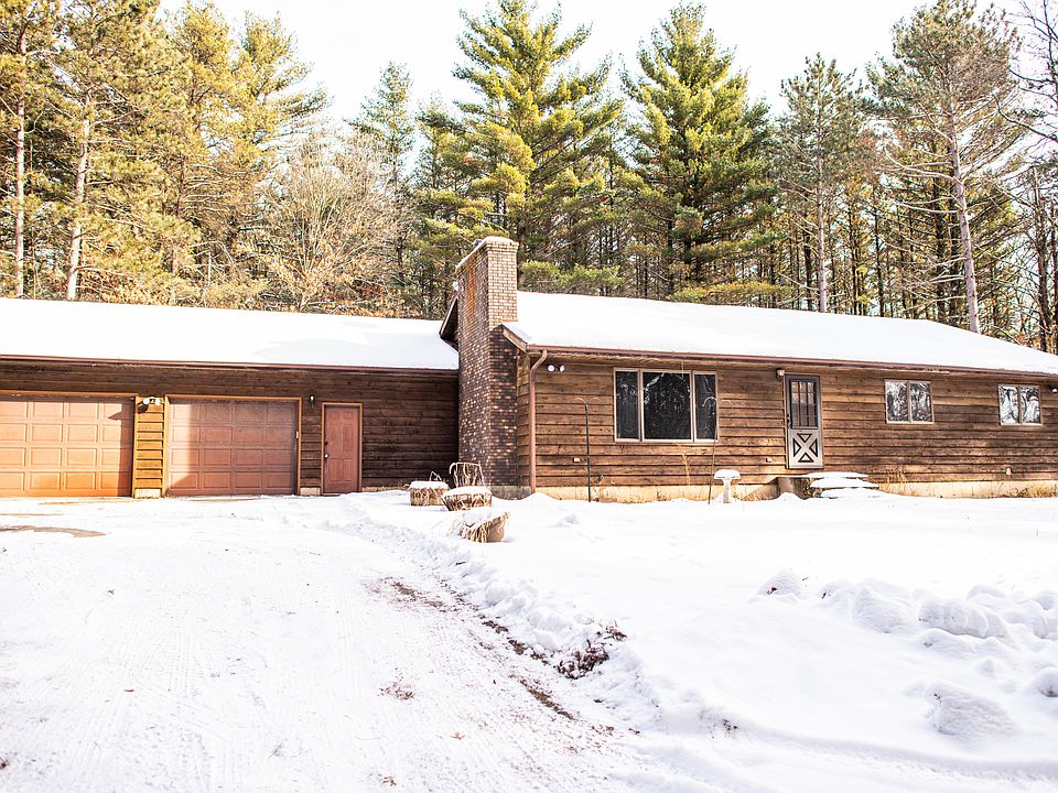 All the seclusion you want yet still close to town! Everything you need is on the main floor here. Enter from the garage right into the spacious mudroom/laundry room that includes a utility sink. Open kitchen and dining room concept with tall vaulted ceilings. Floor to ceiling natural fireplace in the living room. There is a kitchenette area in the basement along with tons of storage space and three other rooms. Enjoy watching the wildlife from the screened back porch. The house sits far back off the highway and is wooded to provide peace and quiet on the 5.67 acre lot. Home is being sold ''as is.'' Don't miss this one!