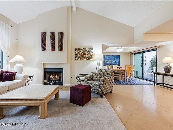This cheerful, bright TOWNHOME & CASITA is impeccably maintained and perfectly appointed. Located in the River Ranch enclave of Rancho Del Rio Village, it's close to Udall Park, Sabino Canyon, Restaurants, and Shopping. This must-see home offers a 2-bdrm/2-bath main house and a charming 1-bdrm/1-bath Casita. Both living areas enter through a private front courtyard, enclosed by the buildings and a locked wrought-iron gate. The main house offers an expansive great room with cathedral ceilings, a fireplace, and tall radius windows. There are easy-to-maintain stained concrete floors in every room. The bright eat-in kitchen has granite countertops and newer appliances, and access to a lovely back patio. Updated Milgard windows & sliding doors throughout. See more tab 4 additional features.. The master suite includes a walk-in remodeled shower. The Casita is a guest's delight with a spacious floor plan including a private bath. The home has a detached 2-car garage. The heated community pool and spa are a short walk away. The HOA includes private access to the nearby paved wash trail.