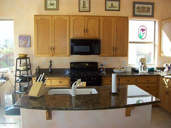 Stunning Mingus Mountain views from this well-appointed home! Open floor plan boasts a bright kitchen with granite countertops, double pantry, newer appliances. Fabulous views from the breakfast nook and spacious living room. Serene master suite with back patio access offers breathtaking views, new dual Corian sinks, huge walk-in closet, separate shower/garden tub. Dual A/C, 3 sliding doors and tinted windows add to the comforts of this beautiful home!