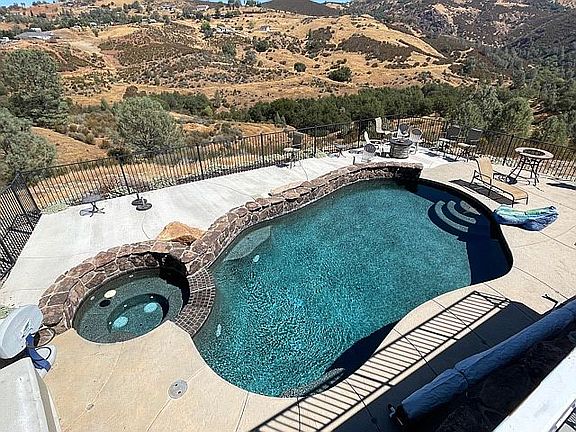 Your own piece of paradise. 45 acres with the Calaveras River running through it. Beautiful 4+ bedroom home with one attached over sized two car garage, a detached 2 car garage and a shop with 3 full size garage doors. Enough room to store all you toys and then some! Go fishing with out leaving your own property or sit back and relax by the salt water pebble tech pool with water feature. Not to mention no PG and E bills with the owned PV solar.