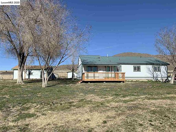 Move in ready! This desirable property has many new upgrades! New carpet, paint, laminate flooring, some windows and two new garage doors. Large kitchen with tons of cabinets, a wood stove and prep sink in the island. Brand new electric hot water heater, electric cook stove and dishwasher. Brand new deck out front and a nice covered patio out back. Brand new hall bathroom remodel with shower, vanity, lighting, and toilet. All walk in closets with solid cedar flooring. All of the bedrooms are very spacious. Many new lights, outlets and switches. Over-sized garage for extra storage, with a storage area on the side and a concrete parking in front. Lots of extra outbuildings, perfect for chickens, dogs and small livestock. Beautiful views of Thompson Peak and the Honey Lake valley. Call today to see!