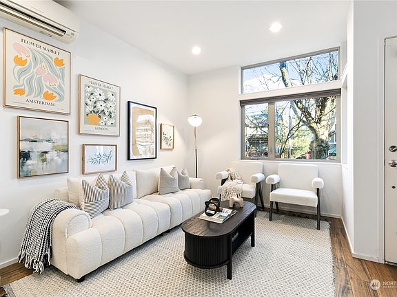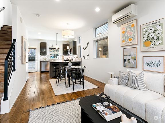 On the edge of Leschi & Central District, this stunning home boasts HW floors, luxurious carpet, designer finishes, AC Splits, sleek kitchen featuring quartz counters, tile backsplash, SS appliances, coffee/tea nook, bar seating next to dining/living space + convenient access to parking. 2nd level has 2 beds w full bath & laundry in-between. Murphy bed stays, easily converting 1 bed into an office. Top level features primary bed & 3/4 bath w heated floors, complete w waterfall shower + dual sinks. 2 rooftop decks offer add'l living space. Conveniently located near Light rail 2025, restaurants + numerous parks, including Hendrix's soccer field + dog park, Sam Smith's playground & tennis courts, + Judkins' walking/bike trails. NO HOA Dues!
