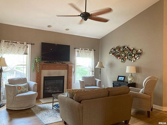 Super sharp 4 bedroom home located not far from Five Points, rec trail, parks and schools. Great room blended spaces, halls and primary bedroom enhanced by teak hardwood flooring installed in 2021. Access from living room with fireplace to beautiful 4 season sunroom, double deck with retractable Sunsetter awning and natural gas grill. You'll love the fenced yard with awesome landscaping. Split bedroom design provides privacy for primary suite featuring walk-in closet and stunning bath with double sinks, tiled shower and heated floor. Popular main floor laundry includes washer and dryer new in 2024. Furnace and dishwasher replaced in 2022. Basement extends the enjoyable living space with fireplaced family room, daylight windows, bedroom with egress window, half bath and ample storage which includes a cedar lined closet. Seller reserves wall TV. Garage work bench will stay. Security system and water softener will stay but never used by seller. 3 car garage size...... 2 car 23x23 and one car 21x12. A great place to call home.