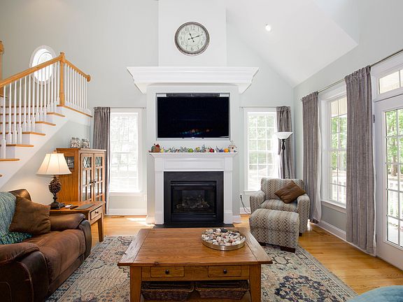 Stunning 4 bedroom home located on a beautiful wooded corner lot in the gated Woodlake CC Community! This gem has lots of features you are sure to love. Hardwood floors with border in dining room, hardwood floors in main living areas on 1st floor, granite countertops in bathrooms and kitchen, double closets, claw foot slipper tub, and separate shower in owner's suite, pull out drawers in lower kitchen cabinets, a Bosch dishwasher, vaulted ceilings in the owner's suite and the living room, custom built in TV mount (TV and sound bar convey) above fireplace and so much more! There are 3 porches and a patio to entertain and enjoy. This home is a must see. Items that convey include: refrigerator, living room TV and sound bar, metal shelves in walk in storage, some shelving in garage, rockers on front porch, chimera on back patio, living room curtains). Transferable home warranty with acceptable offer. The lake in Woodlake is currently dry.