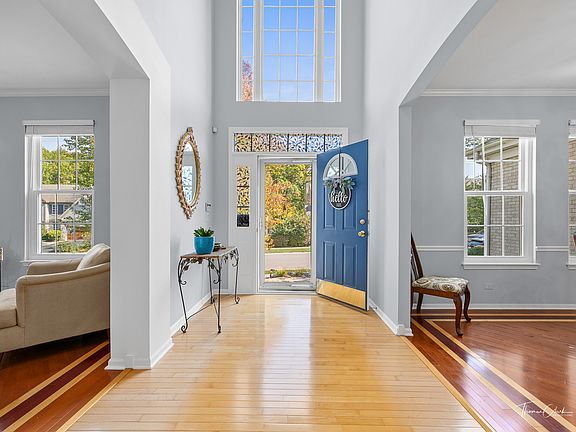 Nestled in the serene Picnic Grove neighborhood, this beautiful 4-bedroom 2.5 bath home offers both style and functionality. Step into a two-story foyer that welcomes you with an abundance of natural light. The main level boasts elegant crown molding and gleaming hardwood floors, creating a warm an inviting atmosphere. Kitchen seamlessly flows into the spacious family room with gas fireplace. This design creates a perfect space for both cooking and entertaining for easy interaction. Natural light fills the area, making it the heart of the home. Second level of this home features four spacious bedrooms thoughtfully designed for comfort and privacy bedroom w/ closets have custom closets. One bedroom has private back deck balcony offering a stunning view of the serene backyard. The spacious basement is perfect for entertainment, featuring recreation area. Large storage area. Three-car tandem garage with lift elevator heated, plus plenty of storage space. Enjoy stunning views of the surrounding wooded conservancy, offering a peaceful retreat right in your back yard with gazebo. Perfect blending the beauty of nature with the comfort of home. Roof 2015, Windows 2020-2022, Come see your new place to call HOME. .