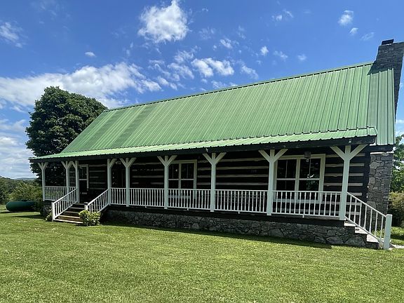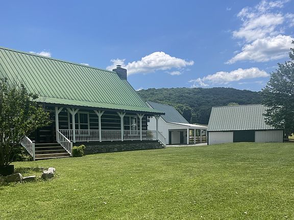 Beautiful log home in quiet country setting with hill and mountain views on 10 acres. This home has many recent updates to kitchen, bathrooms, hardwood floors, windows, garage with overhead area for storage or additional living space, fencing, 4 stale horse barn.