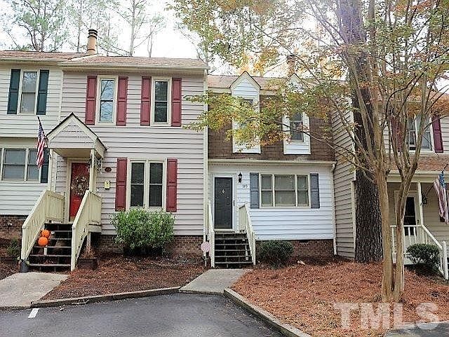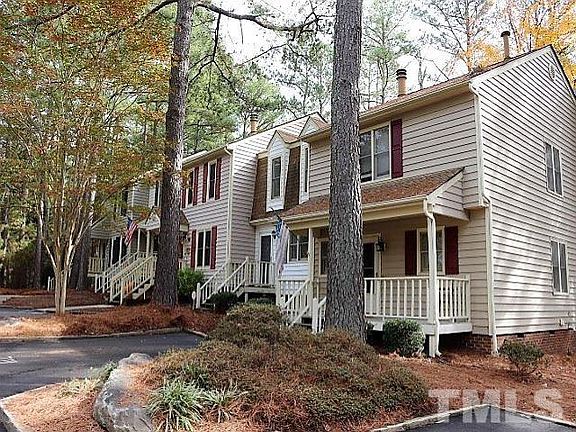 Location! Location! Location! This quiet neighborhood is tucked just a few miles from I540, minutes from Crabtree Mall, North Hills Mall and 20 minutes to much of RTP. Walk to swimming pool, tennis and Raleigh Greenway. Great 2bedroom townhome with patio backing up to the woods! 2 second floor ensuites upstairs . Dual Vanities with tub/shower. FP downstairs in the living room! New paint! New carpet! Lots of storage and closet space. Extra storage room off the patio!