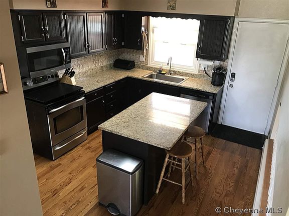 STUNNING RURAL PROPERTY! Featuring 4 bedrooms, 3 bathrooms, 2car attached garage, & outbuilding. This Beautifully updated home includes an updated kitchen with granite counter tops and stainless steel appliances. Wonderful open feeling with two large living room areas, gorgeous hardwood flooring, large windows with beautiful views of the Wyoming prairie. Property is fully fenced with a sprinkler system and large deck for entertaining or watching those famous Wyoming sunsets! This property truly has it all!