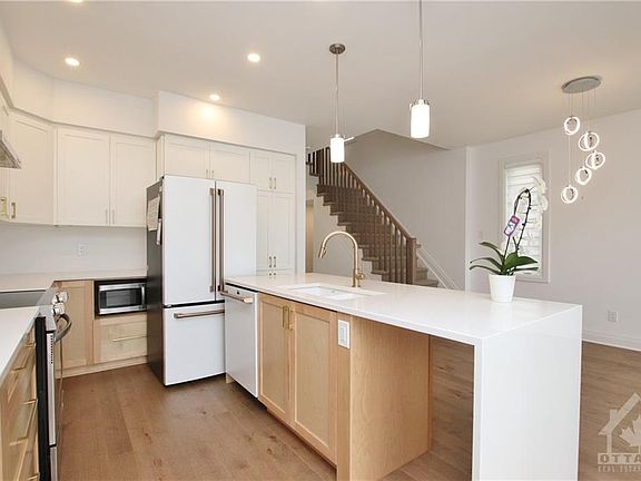 Beautiful 3 Bed, 3.5 Bath END UNIT Townhome, on a prime lot, in sought after Riverside South. Energy Star certified home built by Richcraft. Sun-filled main level with gleaming upgraded hardwood floors throughout offers an open concept living/ dining area with a cozy fireplace, vaulted ceilings, custom designed chef's kitchen w/ upgraded appliances & cabinetry, & eye-catching waterfall quartz island! 2nd level features primary bedroom w/W.I.C. & spa-like 4pc ensuite w/ soaker tub & shower. 2 additional bedrooms, a full bath & laundry room. Finished basement boasts a rec room area, 3-piece bath, den & storage! Perfect location, close to nature trails, parks, shopping, schools & future Limebank LRT Station! This spectacular modern home with tons of upgrades is a MUST SEE! Copyright Ottawa Real Estate Board (OREB). All rights reserved. Information is deemed reliable but not guaranteed.
