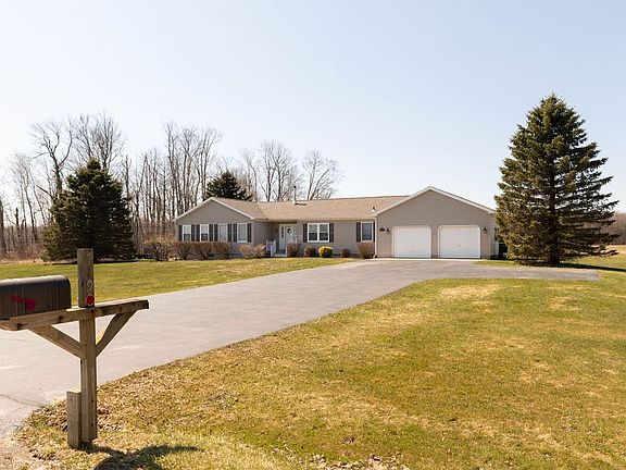 WELCOME TO THIS WELL CARED FOR RANCH STYLE HOME SITUATED ON 44+ ACRES OF LAND IN A PICTURESQUE COUNTRY SETTING! THERE ARE APPROXIMATELY 14 ACRES OF TILLABLE LAND, 26 ACRES OF HARDWOODS, A POND AND 3 ACRES OF MOWED LAWN! OFFERING 1600+ SQUARE FEET OF LIVING SPACE CONTAINING 3 BEDROOMS AND 2 FULL BATHS, THIS HOME WOULD WORK WONDERFUL FOR YOUR GROWING FAMILY! THERE IS AN OPEN FLOOR PLAN FAMILIES TODAY LOVE; YOU WILL ALSO APPRECIATE THE SPACIOUS KITCHEN WITH BREAKFAST BAR AND ALL OF THE APPLIANCES INCLUDED. ADJACENT IS THE SIDE MUDROOM/LAUNDRY ROOM THAT WALKS OUT TO THE LARGE ATTACHED GARAGE MEASURING 26 X 36 WITH AN ADDITIONAL STAIRCASE THAT LEADS TO THE HIGH AND DRY BASEMENT. THE MAIN BEDROOM IS SPACIOUS WITH TWO WALK-IN CLOSETS AND A PRIVATE BATH. EXCELLENT CURB APPEAL WITH MAINTENANCE FREE VINYL SIDING, A STONE PAVER WALKWAY AND A SPACIOUS PAVED DRIVE WITH A CONVENIENT TURN AROUND. MANY IMPROVEMENTS INCLUDING A NEW ARCHITECTURAL SHINGLED ROOF, NEW GAS COOKTOP AND NEW CARPETS IN THE SPARE BEDROOMS! HOME SITS BACK OFF THE ROAD AND ALSO OFFERS A GENERATOR HOOKUP!