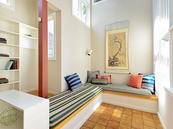 Set back from the street, 719 Coventry is bordered by a private courtyard surrounded by lush gardens, an inviting brick path to the front entrance and a detached garage. A signatory tower designed by architect Donlyn Lyndon, partner of Charles Moore provides architectural intrigue when arriving at the front door. This home's single story, large flat lot and level-in access make it uncommon and desirable. Step through the front door and enjoy the home's open floor plan. At first glance, one notices how every room is filled with ample light, views of the private gardens, beautiful oak floors and great entertaining spaces. The home has a desirable horseshoe floor plan with the kitchen, living and dining room at the apex. The dining room looks out to the backyard garden and provides space for an oversized dining table for plentiful dinners with friends and family. The living room has a wood burning fireplace and also provides views of the backyard. The kitchen sits next to the dining room and provides access to the yard. This layout gives nice sight lines between the rooms. Located on the wing off the living room is a modern addition. It is perfect for a study with built-in benches, desk, bookcases and a stunning tower at the back of the room. Many windows encapsulate the space and give the effect of living inside a lit jewel box. On the other wing, a hallway leads to the home's 3 large bedrooms. With great light and views of the surrounding grounds, these bedrooms provide tranquil spaces to which to retreat. A bathroom with its original details is appointed with a separate tub and stall shower. An additional half bath is located on the hall and provides easy access for guest. The backyard is truly unique and beautiful. It is surrounded by native plantings, natural rock walls and a pool that provides a welcome respite on warm summer days. A modern outdoor shower is also a welcomed amenity. This home truly provides East Bay indoor/outdoor living at its finest!