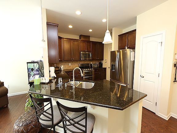 Back on the market, buyer financing fell through! Almost new, this immaculate townhome is located in a desirable area in the heart of Cary. Upgraded with hardwoods, granite, tile back splash & stainless appliances in the kitchen, this open floor plan is ideal. Relax on the covered back patio. Lovely master suite featuring an over-sized glamour bath w/separate tile shower. All bedrooms have ceiling fans, all baths have granite counters. Large walk in closet and laundry room.