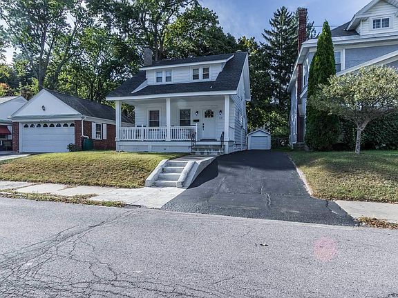 Updated, new and ready for you! This 3bed/2 bath home has been done top to bottom. Easy living, open concept main floor, has beautiful hardwoods and recessed lighting. Updated kitchen w/vaulted ceilings and beams, stainless steel appliances, tile backsplash, SS apron sink and granite counters. Great breakfast bar and sliding glass doors to back yard. Living room has a statement fireplace wall. Washer/dryer on 1st FL. Great front porch! Newer roof, boiler, HW Heater, Electrical, lighting, plumbing. windows, blinds, and Doors. Partially fenced backyard with nice deck for BBQs. 1 car detached garage. Close to park, rose garden and shopping. Back up the moving truck the hard work has been done for you!