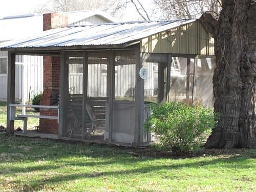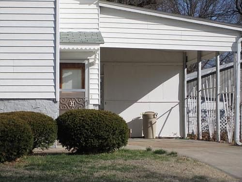 Handicap accessible ramp at front entrance. Large backyard with separate screened in patio with brick fireplace. Attached carport and detached garage withshop area and another outside storage building. Second shower head in basement.